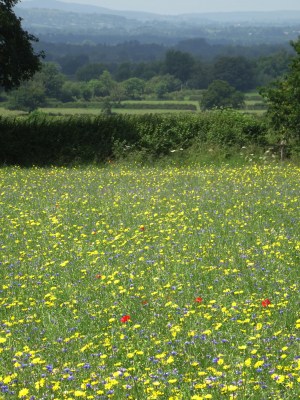 View from the former turnpike over the fields to Worthenbury