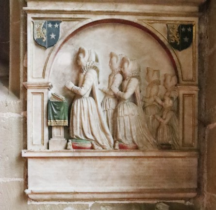 The church continued to be well used throughout its history. Dating to the 17th century, the Trevor Chapel a charming memorial to John Trevor’s daughter-in-law with her daughters dates to 1602, and another, rather more monumental piece, shows her with her husband (shown further down this post) and dates to 1638. Other memorials in the church also date to the 1600s.