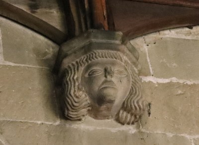 As I was just about ready to hit the Publish button on this post I had a whizz through Dominic Strange’s Timeline and Gazetteer, which revealed that St Andrew’s in Bebington on the Wirral possesses misericords in three choir stalls, plus two that have survived being separated from their choir stalls, now serving as corbels. Although the church is not open except for Sunday services, weddings etc., Karen from the church office very kindly arranged for me to visit when volunteers were working there.