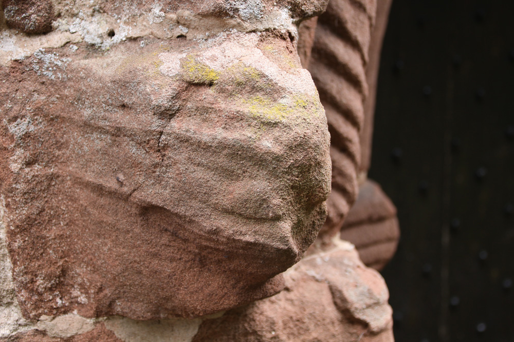 As with the lower chapel, the upper chapel has some rather wonderful sculptural elements, with much less emphasis on family symbolism, and much more on the sort of themes that are found in the margins of illuminated manuscripts, on misericords, and in the roof areas of churches. They include scenes of everyday life; pagan, mythological and religious motifs; and two humourous grotesques. The wood carvings, high in the chancel and the nave on stone corbels are difficult to see due to their height and the lack of light. The stone carvings, which are lower down, are quite easy to make out.