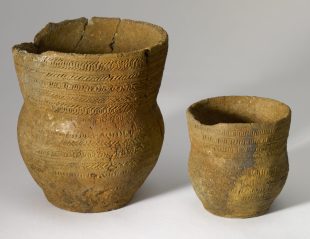 The grave contents are now in the British Museum in London and the cape itself was featured in Neil MacGregor’s radio series (and the book that followed) “A History of the World in 100 Objects,” based on objects in the British Museum. In 2013 it was loaned to Wrexham County Borough Museum where it was put on display for five weeks, together with Llong shale and jet necklace, discovered in another burial nearby. It is is decorated with impressed designs, and absolutely remarkable for the skill required to work something so thin.