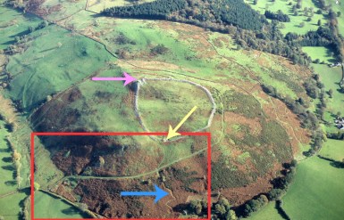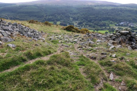 If you are interested in the Iron Age heritage of the Clwydian Range, Moel Hiraddug is beautifully clear to the southwest, and other hillforts of the Clwydian Range, fading into the distance when we were there, are easily visible on a clear day,