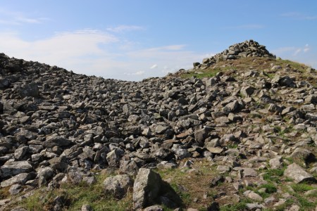Gop Hill in northeast Wales, a few miles southeast of Prestatyn, and just above the village of Trelawnyd (formerly Newmarket from 1710 to 1954) is home to Gop Cave and Gop Cairn, just a few minutes apart from one another. Gop Cairn has the distinction of being the largest man-made prehistoric mound in Wales, and when approached from a distance, its size really is impressive. Although the cairn was investigated in the 19th century, with a vertical shaft sunk from the top to the level of the floor, and a “drift” tunnelled outward from the base of the shaft, no burial chamber or human remains were found.