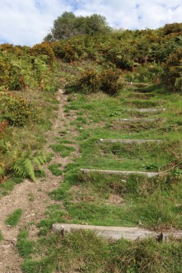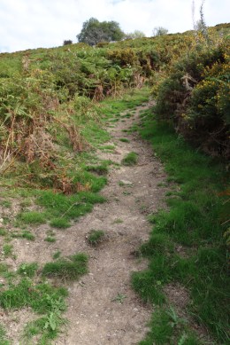 The first part of the footpath is a small lane that takes you past a couple of houses, until it reaches a narrow path that makes its way along the side of a tall garden fence to your right. This turns abruptly right and slightly uphill, leading to a low stone-built stile which takes you on to the hillside. I was with Helen Anderson (well-known on Twitter as @Helenus_) and we were busy nattering and wild-flower spotting (complete with wild orchids) so weren’t paying too much attention to the pathway markers, but they are there if you keep an eye open.