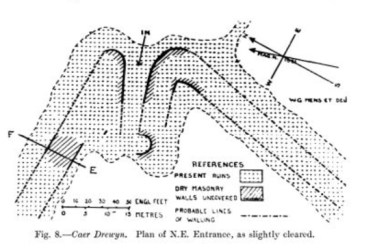 The excavations linked the passage in which they were working to the second entrance, the very small opening for which is a little further along the ridge to the west, and shown on the plan at the top of this post. This is sometimes referred to as the North-West Cave, although it is part of the same cave system as the main Gop Cave.