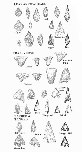 Knapped stone arrowheads from the Neolithic. Source: Malone 2001